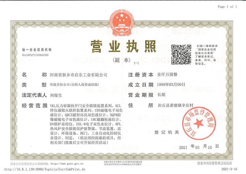 河南省新鄉(xiāng)市啟東工業(yè)有限公司始建于1987年,是專注研發(fā)、生產(chǎn)自動(dòng)化儀器儀表(主要與壓力容器、鍋爐等容器配套使用)的廠家。主要產(chǎn)品有液位計(jì)(磁敏雙色型、磁翻柱型等)系列、烤包器熄火聯(lián)控裝置系列、壓力容器快開門安全聯(lián)鎖保護(hù)裝置系列、鍋爐報(bào)警器系列。二十多年來,公司產(chǎn)品暢銷國內(nèi)并遠(yuǎn)銷俄羅斯、蒙古與東南亞,深得廣大用戶的信賴和好評。我們多年來致力于自動(dòng)化儀器儀表的研制生產(chǎn),公司現(xiàn)具有完善的生產(chǎn)、試驗(yàn)、檢測手段和設(shè)備。科技創(chuàng)新、誠信服務(wù),是我們不變的經(jīng)營理念,我們將以強(qiáng)有力的技術(shù)支持及售后竭誠為客戶提供良好的服務(wù)。  2012年我公司成功研發(fā)了KCL系列烤包器熄火聯(lián)控裝置,并于2013年2月2日榮獲中華人民共和國國家知識產(chǎn)權(quán)局辦法的《實(shí)用新型**證書》<**號:2021202257735>該產(chǎn)品廣泛應(yīng)用于唐鋼等大型鋼鐵企業(yè),為烤包器安全作業(yè)提供了有力的保障。  2002年我公司成功研發(fā)磁敏電子雙色液位計(jì)獨(dú)特的高亮度LED紅綠雙色顯示,獲得了專家的首肯和用戶的一致好評。在此基礎(chǔ)上我公司研發(fā)人員十年磨一劍,致力于XQFB-1防爆型磁敏雙色液位計(jì)的研發(fā),于2013年12月27日由國家防爆電器產(chǎn)品質(zhì)量監(jiān)督檢驗(yàn)中心檢驗(yàn)合格并頒發(fā)防爆合格證書<編號:cnex19.0883>。該產(chǎn)品性能得到了充分的發(fā)揮,廣泛應(yīng)用于含有Ⅱ類A·B級T1-T4組可燃?xì)怏w或蒸汽與空氣混合形成的爆炸性混合物的0區(qū)、1區(qū)危險(xiǎn)場所。連接用戶DCS或PLC系統(tǒng)實(shí)現(xiàn)遠(yuǎn)距離集中顯示和控制,從而實(shí)現(xiàn)節(jié)能、數(shù)字化管理。為用戶增加了一定的經(jīng)濟(jì)效益和社會效益,。2014年公司成功申請了夢潤儀表的logo,新的品牌新的形象,夢潤儀表是啟東的LOGO, 歡迎新老用戶前來洽談合作。  我們一如既往地注重科研的投入,憑借產(chǎn)品的不斷更新、加大科技含量,進(jìn)一步拓展市場。我們相信品質(zhì)成就未來,以過硬質(zhì)量、優(yōu)惠價(jià)格、完善的售后服務(wù)熱忱歡迎廣大客戶來我司視察指導(dǎo)、洽談業(yè)務(wù);精誠合作,共創(chuàng)輝煌!